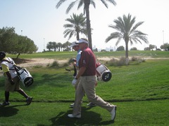 勤め先の取引先に誘われて、カタールマスターズを観戦に行ってきました。ゴルフは去年のミシガン滞在時から本格的に始めたばかりのため、ギャラリーとしてゴルフ観戦するのも初めてでしたが、自分でルールを覚えたあとだったので楽しむことが出来ました。ドーハでゴルフ場を呼べるのはこのドーハ・ゴルフクラブしかないかと思いきや、一応4つ程度はあるとのことです。去年のミシガン滞在時には週2回はコースに出ていたゴルフも、カタールに来てから一度もやらなくなっていましたが、久しぶりにコースを見てみて少しヤル気がでてきました。このカタールマスターズは欧州ツアーに組み込まれており、出ているメンバーもそれなりのメジャーな方々が来ているとのこと。観戦した金曜日は2日目にあたりましたが、娯楽のないドーハのせいかそれなりの人出で賑わっていました。それでもテレビで見るギャラリー数のイメージとは程遠く、簡単に選手の間近のポジションで観戦することができたのは幸いでした。