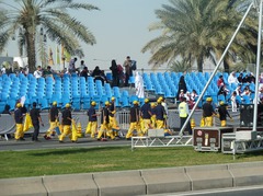 パレードはコーニッシュ沿いの道路にラクダや馬の行進に始まり、こんなに沢山軍隊が居たのかと思うほどの種類の部隊が行進してきました。また、コーニッシュを挟んだ海には船やら飛行機やらも飛んできて、去年と同様、いままでどこに居たのかと思う戦闘機やら船が現れます。パレード自体は1時間ぐらいで終わるありきたりのものですが、どこの国も同じかも知れませんがこういったイベントは国のまとまりを保つためにも必要なのでしょう。