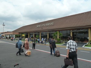入場ゲートは地元インドネシアとインターナショナルで別れており、キタスを持っていても今回は国際料金の方になってしまいました。入場ゲートでは、ペットボトルの水を無料でくれます。女性用に布を貸し出してくれていますが、特になくても遺跡の入場に規制はないようです。ゲートから遺跡までも芝生で整えられた公園と歩道でベビーカーでも全然問題ありません。