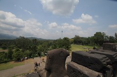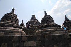 ジャグジャカルタ2日目となる今日は、ホテルでレンタルした貸し切りカーで今回の旅の主目的でもあるボルブゥドゥールに行ってきました。遺跡までは車で1時間少々で着いてしまいます。遺跡ということで郊外の寂れた場所を想像していましたが、さすがに仏教三大遺跡の一つで、著名な世界遺産だけあって遺跡そのものが整備された公園の中心となっており、地元インドネシアも含めた大勢の人々で賑わっていました。随分前に訪れたカンボジアのアンコールワットと同様に、ジャングルの中でこれだけのボリュームの石の建造物があるというのは、それだけで圧巻な風景です。特にボルブゥドゥールは、一つの建物で構成されており、その質量は物凄い存在感があります。