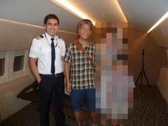 前述の柿崎さんが色々とご説明してくれて分かったのですが、このシュミレーターは、モーションがない以外は全て本当の訓練で使用する機材と同じだそうです。確かにコクピットはもちろん操縦桿も本物とのことで、なかなか無い体験です。一度、ドバイで登場時に息子と一緒にコクピットに招き入れて写真を撮ってくれたというのはありましたが、日本では一般人がコクピットに入ること自体が問題化になるでしょうから、なかなか無い体験となります。