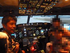 30分はあっという間で、興奮のうちに終わってしまいます。後からコクピット内のビデオは、ただでDVDに焼いてくれます。なぜか写真は有料なので、小さい方を990円で購入しました。いやはや値段が高いなと思っていましたが、終わってみると結構な興奮の余韻が残って、家族全員(途中で睡眠に入った下の息子を除いて)ひとときの異次元体験で、値段分は楽しめたような錯覚があります。他にも何万もするコースがあり、柿◯さんによるとレーザー誘導による実機と同じの着陸体験が出来たりするこーすなど、好きな方にはたまらないメニューが盛り沢山とのことです。実際そういうマニアな方々に取っては、数万など安いものなのでしょう。自分にももう少し基礎知識があった方がより楽しめた感じです。 先輩の柿◯さんがいたせいもあってか、丁寧でサービスに満ちたシュミレーター体験となり感謝ですが、高価なアトラクションではあります。好きな方は最新鋭のボーイング737のコクピットに乗れると思えば、安いものかも知れません。 いづれにせよ普通では、一般人は体験できない内容であるのは確かなので、興味のある方は損はしないと思います。今日の時点では、日本人の客はほとんど居ないような感じでしたが、こんな道楽も海外ならではで良いかも知れません。それではお世話になった柿◯さんのマンダラ航空での活躍を期待してます!