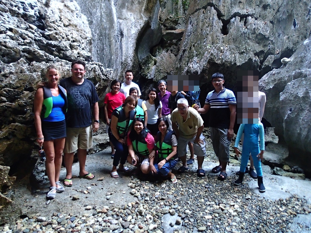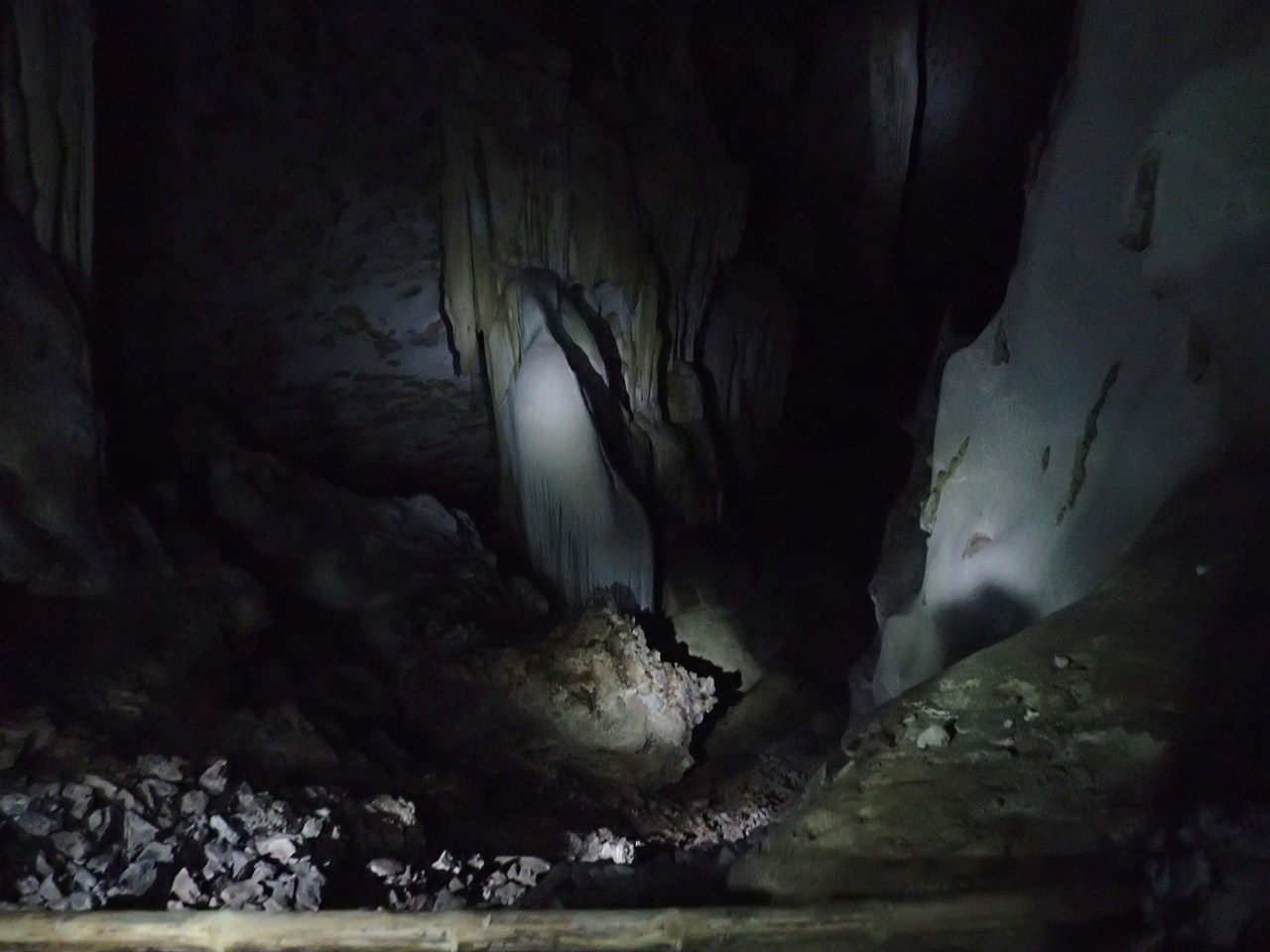 一つ目はいきなりハードな感じで、滑りやすい岩から細い洞窟の入り口を抜けると中は少しひらけていて、鍾乳洞が見れます。それでも真っ暗なため、ちょっと怖い感じです。次はほとんど近づけない感じの洞窟で、最後に降り立ったのは、洞窟の中にさらに頭上が開けている空間がある場所で、昔はそこでちょっとしたパーティーなどを開いていた時期もあったとのことでした。