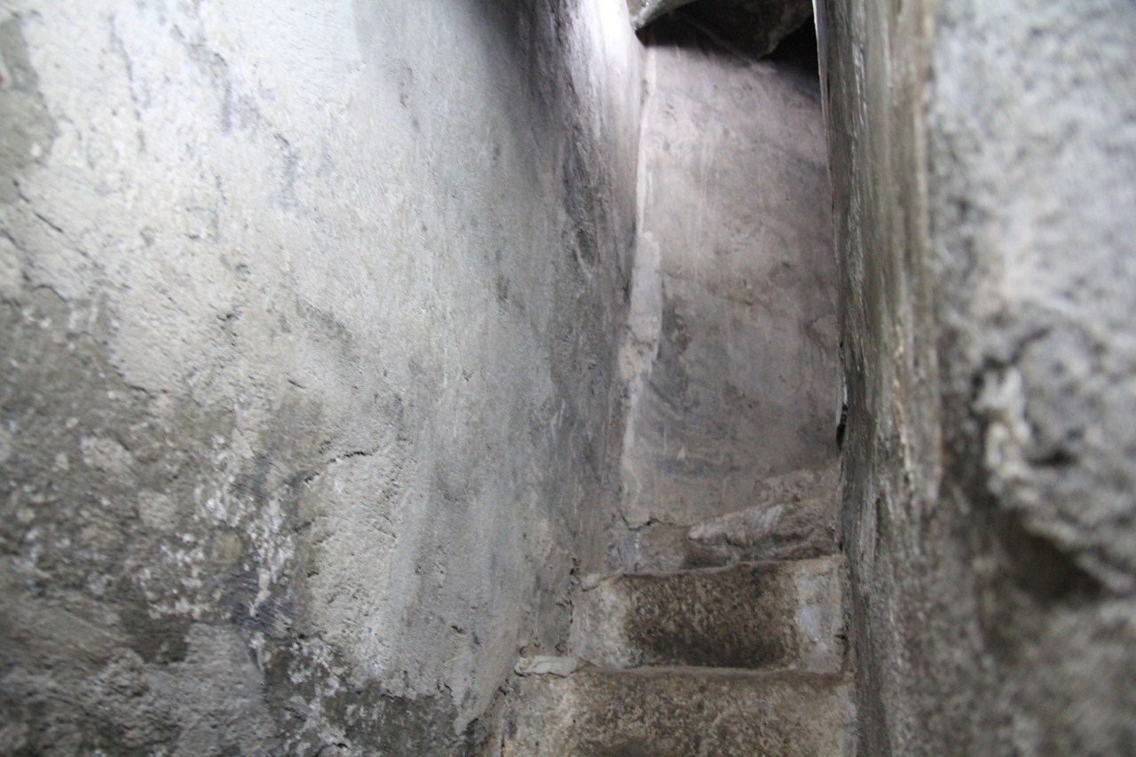 ・尖塔へ上る石段です。右は入り口です。スペイン統治時代のそのままといった感じですが、実際には大聖堂は復元されていのでしょうかね。。