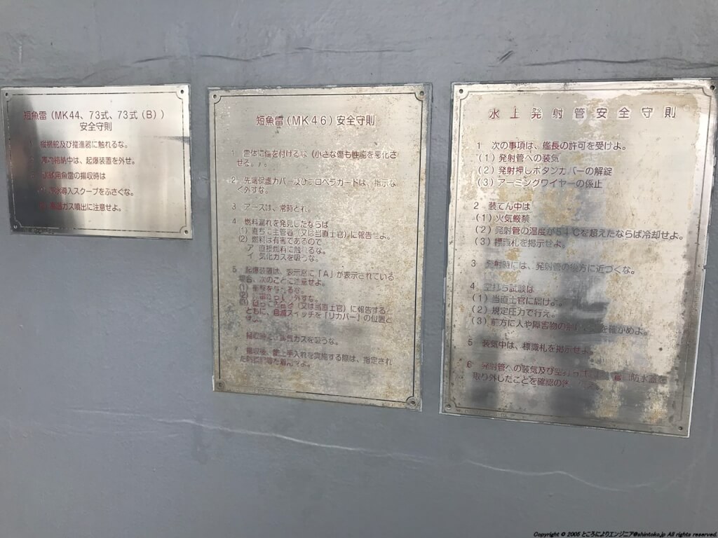 その後は早速、「むらさめ」から艦内の見学が始まったのですが、結構な大人数ということもあり、乗船のタラップはちょっとした渋滞です。飛行機はしょっちゅう乗っている感じですが、船というのは滅多に乗った記憶がないので、軍用船の武骨なタラップとはいえ新鮮な感じでした。