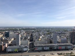 という事で、次の日の日曜日は市内観光をしてみました。まず最初は共産時代の象徴とも言える文化科学宮殿(スターリンからの贈り物とのこと)の展望タワーに登りました。10時がオープンなのですが、ちょっと前に着いたものの既に4、50人くらいの観光客で混雑しています。エレベーターで展望台に登りと、ちょうど360度ワルシャワが一望出来るのですが、まだ高層ビルも少なく平原の国だけあって、どの方角も地平線が見えるので圧巻です。しかし、これだけ平原ばかりの国も珍しいと改めて思います。これも周囲の国から容易に攻められた歴史の一因なのでしょうか。