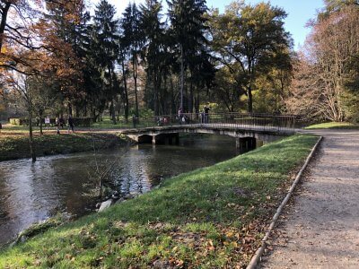 公園内は先週にいったザホドニ公園とはちょっと異なり、公園内に入ると街中の雰囲気はなく木々も大分高い感じです。どちらも自然に溢れているのは変わりありませんが、こちらの公園の方が、より自然に近い感じでしょうか。ビオトープっぽい感じで、公園内は歩道を外れると湿った沼地のような感じで、そのため山の中に来ているような感覚があります。先週のザホドニ公園と同じく日本と比べるとかなり遅い紅葉ですが、公園内の木々がちょうどよい紅葉で本当に奇麗な風景です。あと1,2週間もすると紅葉も終わってしまいそうな感じですが、先週に引き続き今週も本当に紅葉にちょうどよい感じでしょうか。