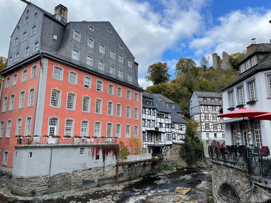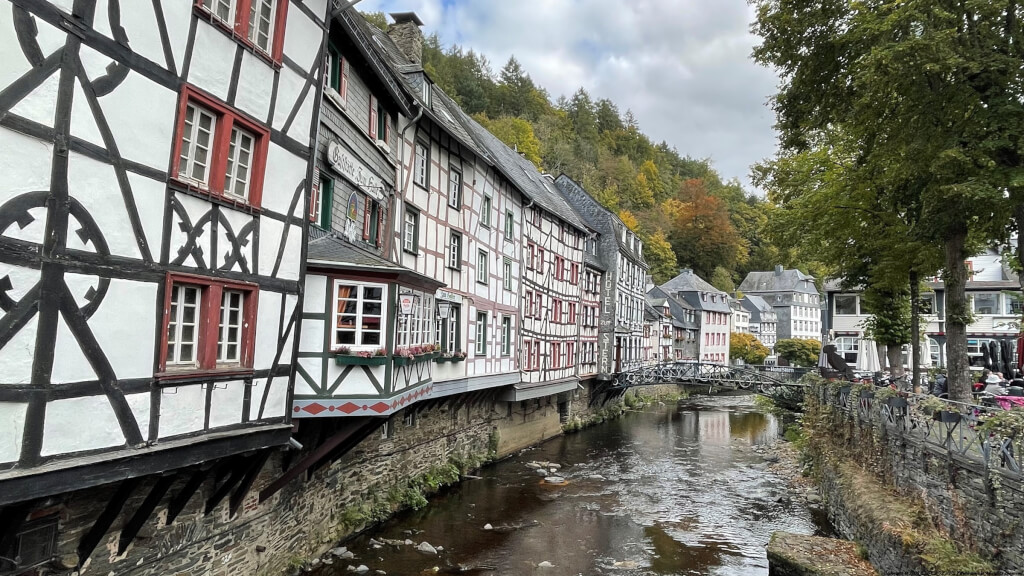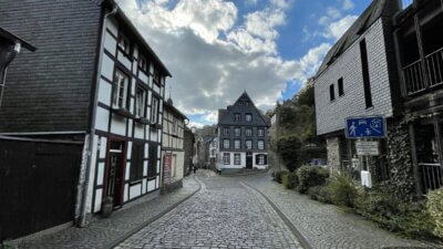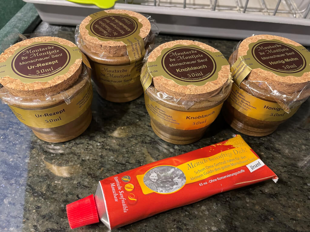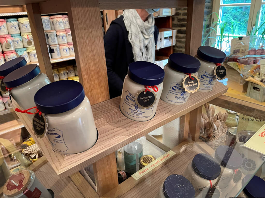 デュッセルドルフ滞在の週末はレンタカーを借りてベルギーとの国境沿いにあるモンシャウという村にドライブで行ってみました。去年まで滞在していたオランダのヘーレレンへ向かうのと同じ高速道路で途中までは懐かしい感じで車を走らせていました。こちらも何度か行った教会の街アーヘンのその先ぐらいで、車で1時間半くらいでしょうか。まずは村の入り口付近にある自家製マスタードが有名なお店に寄ってみました。