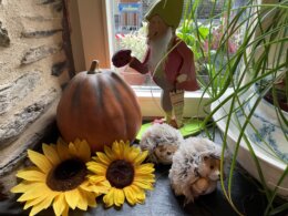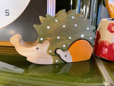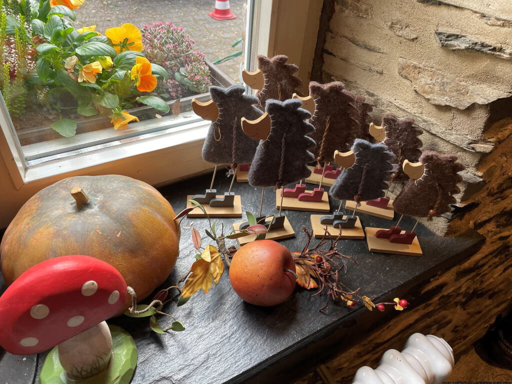 ちなみに店内はハロウィンも近いせいかヨーロッパらしい可愛らしい飾り付けがされていました。中でも今年はすっかり身近に感じられた!ハリネズミのヘジホッグのぬいぐるみやら置物やらが沢山置いてありました。ヘジホッグはヨーロッパの田舎には共通で、馴染みのある動物なのでしょうか。ヨーロッパの人にはなじみであまり関心がないかと思いましたが、やはりこちらでも可愛い小動物という認識のようですね。あまりにも可愛らしいので、積み木っぽい小さい置物をついでに購入しました。