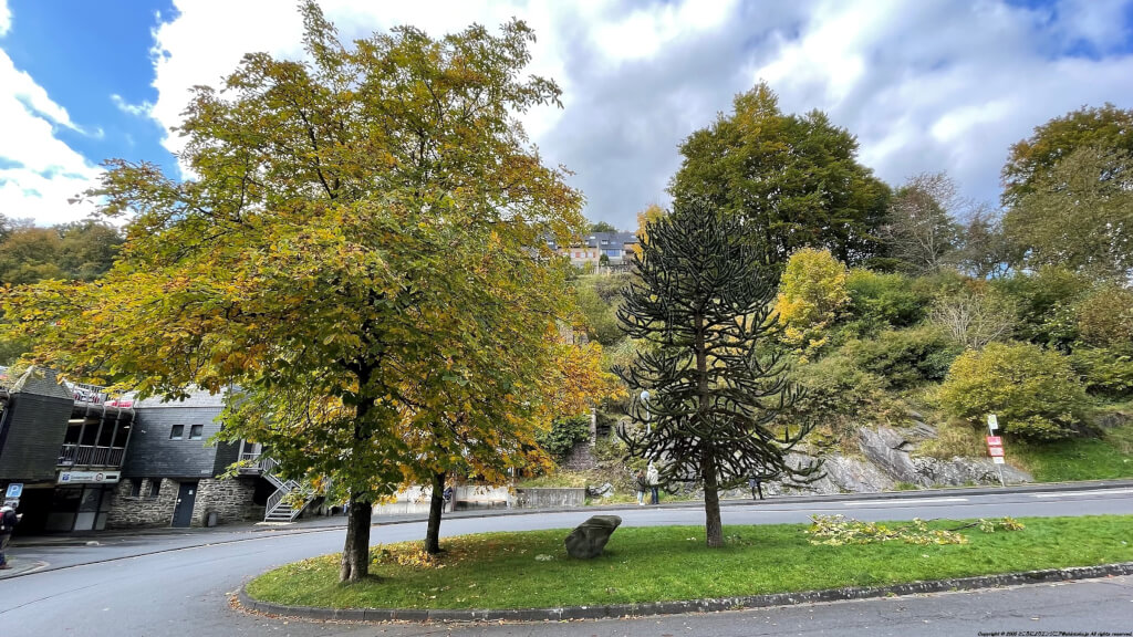 その後、村の方へ向かいますが車は村の入り口のロータリーの駐車場では狭くて地元ヨーロピアンしか停められない感じですので、手前の道路のチケット制の道路の駐車スペースの方が良いです。歩いてもどのみち数分しかかかりません。小さい駐車場と紅葉が奇麗なロータリーを過ぎると旧市街の街並みです。10分も歩くとリネック(街広場)があり、こじんまりとしていますが、こんな平日でもそれなりに観光客がいたのには驚きました