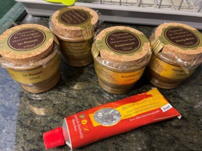 本当に小さなお店なのですが、既に美しく佇まいで小さな小川が流れてる敷地のあるお店には数十種類の自家製マスタードがところ狭しと並べてあります。カウンターにある幾つかのマスタードもアイスのロディのように、気持ちよくテースティングさせてくれます。どれも独特の風味で迷うのですが、幾つかのお薦めのテーストを小瓶で買ってみました。きっとドイツのバーベキューしたソーセージと一緒に食べると絶品なのでしょう!今から楽しみです!