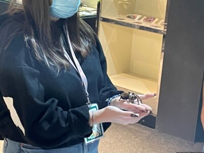 ちょうど入場した際にスタッフの人が蜘蛛の一匹を水槽から出して、来場者の手のひらに置いてくれるというイベントをしていました。私はちょっと遠慮させてもらいましたが、毎時間実施されているようです。見かけは大きくてグロテスクな大型の蜘蛛たちですが、種類によって毒の有無もことなり、どうやら愛好家たちのペット用!?も多いとのことです。