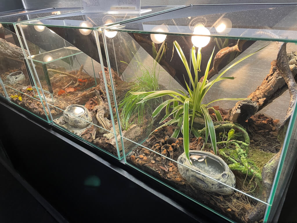 全く期待せずに観てみましたが、蜘蛛と一部、蠍も展示されており、小1時間程度の時間潰しにはなります。夜行性であまりというか全く動いていないのですが、水槽の中では堂々としていて色鮮やかなとんでもない大きさ(10㎝くらいは平均で、タランチュラは20cmくらいの大物もいました)の蜘蛛を堪能できるので、時間があれば覗いてみるのもよいのではないのでしょうか。