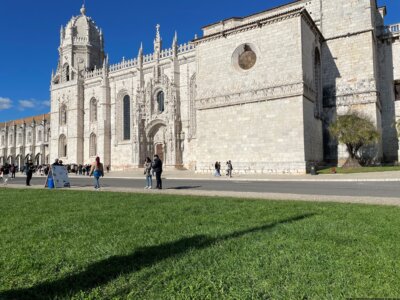 その後、記念撮影などしてみてから海岸沿いの道を歩いて、次の目的地である「ジェロニモス修道院」に向かいます。歩道橋を渡って、石造りの立派な「ベラルド現代近代美術館」の中央を通っていくと十数分で着きます。途中で遠目に「発見のモニュメント」などを観て、昔のZARDのジャケットにあったような絵に描いたようなヨットハーバーなどを観ながら向かいました。