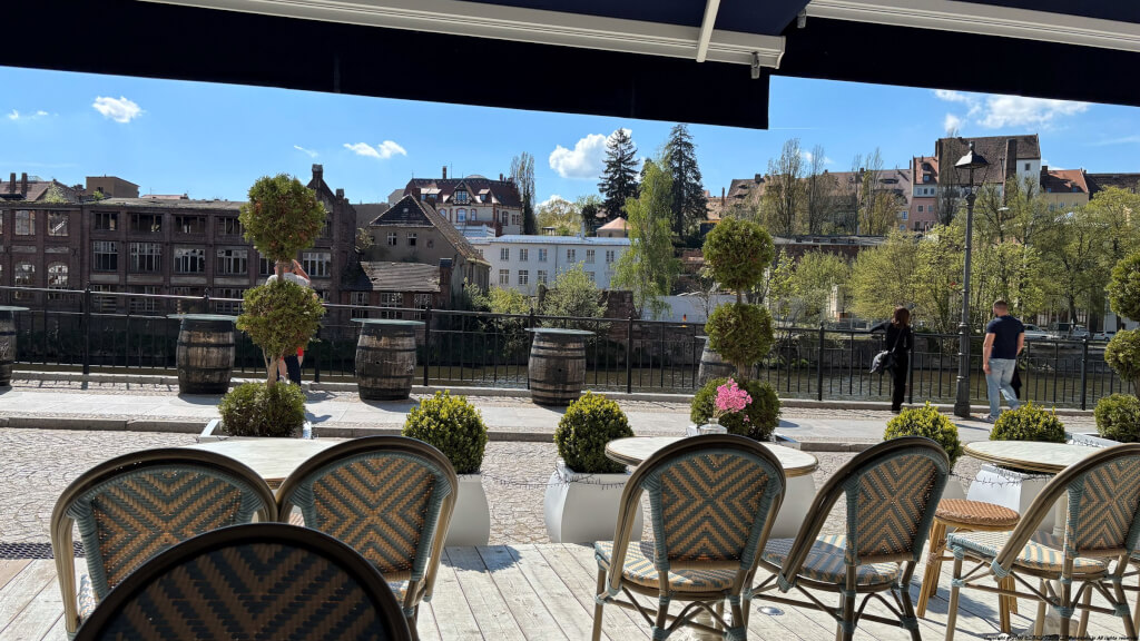 そんなことに想いを巡らせながらも、お昼はやはり物価も安い!ポーランド側に戻って対岸のドイツのゲルリッツの建物を眺めながら、美味しい定番のポーランド料理に舌鼓を打ちながら、暖かくなってきたオープンテラスで食事を楽しみました!