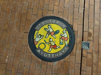 夕食の後は、ホテル隣接のモールに寄ってフードコートでデザートと食べたところで初日は終了です。なぜかモールの敷地内だけ日本にあるようなカラーのマンホールが設置されていました。
