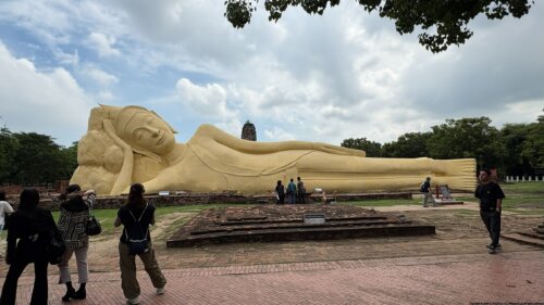 その後、観光用の像が歩き回っているブンプララーム公園内を徒歩で移動しつつ、ワット プララームとワット プラ マハータートの遺跡を見学して主要な遺跡7つのうち3つはあっという間に見れてしまいました。ちなみにワット プラ マハータートは、観光パンフレットなどでよくPRされている木の根っこに顔が埋もれている仏像様がある遺跡ですが、実物の仏像様は案外小さく写真のイメージで訪れると少し拍子抜けします。