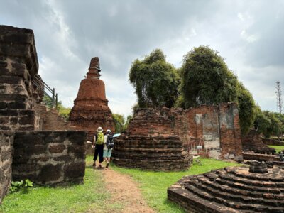 お向かいの修道院でチャリティーバザーのような催しがあって、そこでタイ料理を無料で摘まんでもらいながら、ワット マヘーヨンの見学を済ませて帰路は川を越えずにアユタヤ駅でトゥクトゥクを2台借りて自転車ごと乗ってワット ラーチャブーラナまで戻って来ました。大変なサイクリングとなってしまいましたが、滞在中はシクロにトゥクトゥクにレンタル自転車とグラブと色々使いましたが、多分トゥクトゥクの一日チャーターが一番お得でかつ効率的なのだと思われます。ただグラブも数分待たずに掴まりますし、交通手段に困ることはないと思います。レンタル自転車だけは中心部の幾つかの遺跡の移動ぐらいに留めておいた方がよいかと思います。20年前はレンタル自転車で頑張っていた記憶がありましたが、もう歳なのでしょうか。。。