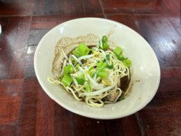 自転車を返却する前にワット ラーチャブーラナ近くのクイッティアオルア メイ プラニーというクイッティアオ(タイの麺)屋さんにお昼を食べに行きました。どこかの政府のサイトに紹介されていたお店なのですが、観光客はそんなに多くなく地元の人が中心と言った感じです。一つの麺のお皿は非常に小さいので、3つ位頼まないと通常の量になりません。面の種類やスープも基本が3種類あるので、色々な種類のクイッティアオが食べれるので、それはそれで良かったです。
