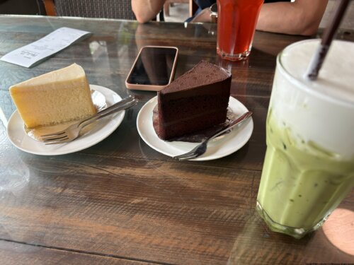 自転車を返却した後は、マラコーカフェという冷房の効いたカフェで一休みしましたが、ここのお店の抹茶カフェとケーキが大層美味しかったので、アユタヤは田舎ではありますが、観光地付近は割とカフェもこなれているのかなとは感じました。
