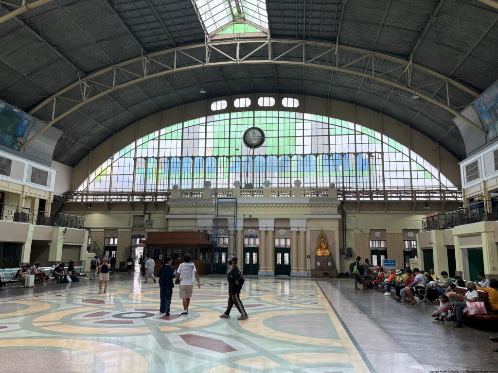 車内には売り子が飲み物やお菓子など何でも売りにきますが、ここら辺もローカル色満載でそこら辺の普通のおじさん、おばさんが売りに来ているような印象でした。そんなローカル電車でしたが、数駅を挟んでバンコクのフアランポーン駅までは1時間半程度で到着してしまいます。途中、クルンテープ・アピワット中央駅というところに停車し、そこでほとんどの乗客が降りて行ったのですが、バンコクの駅と言えばフアランポーン駅という知識しかなく、後からほとんどの長距離特急や急行は新しいクルンテープ・アピワット中央駅に発着が移管されたということを後から知りました。